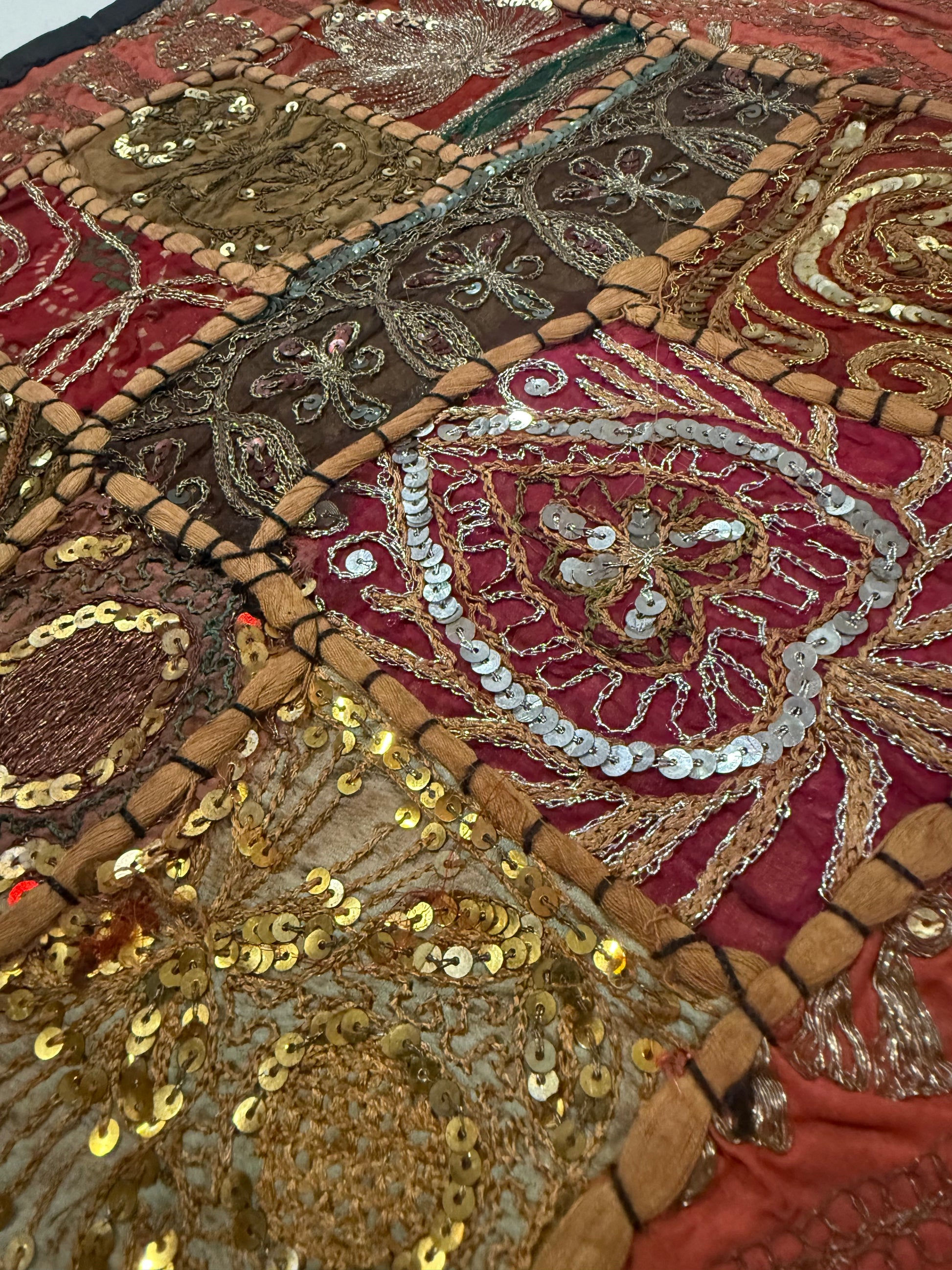 16'' INDIAN TAPESTRY CUSHION COVER ZARI BEADED PATCHWORK DECOR CUSHION COVERS (Kelly) #20