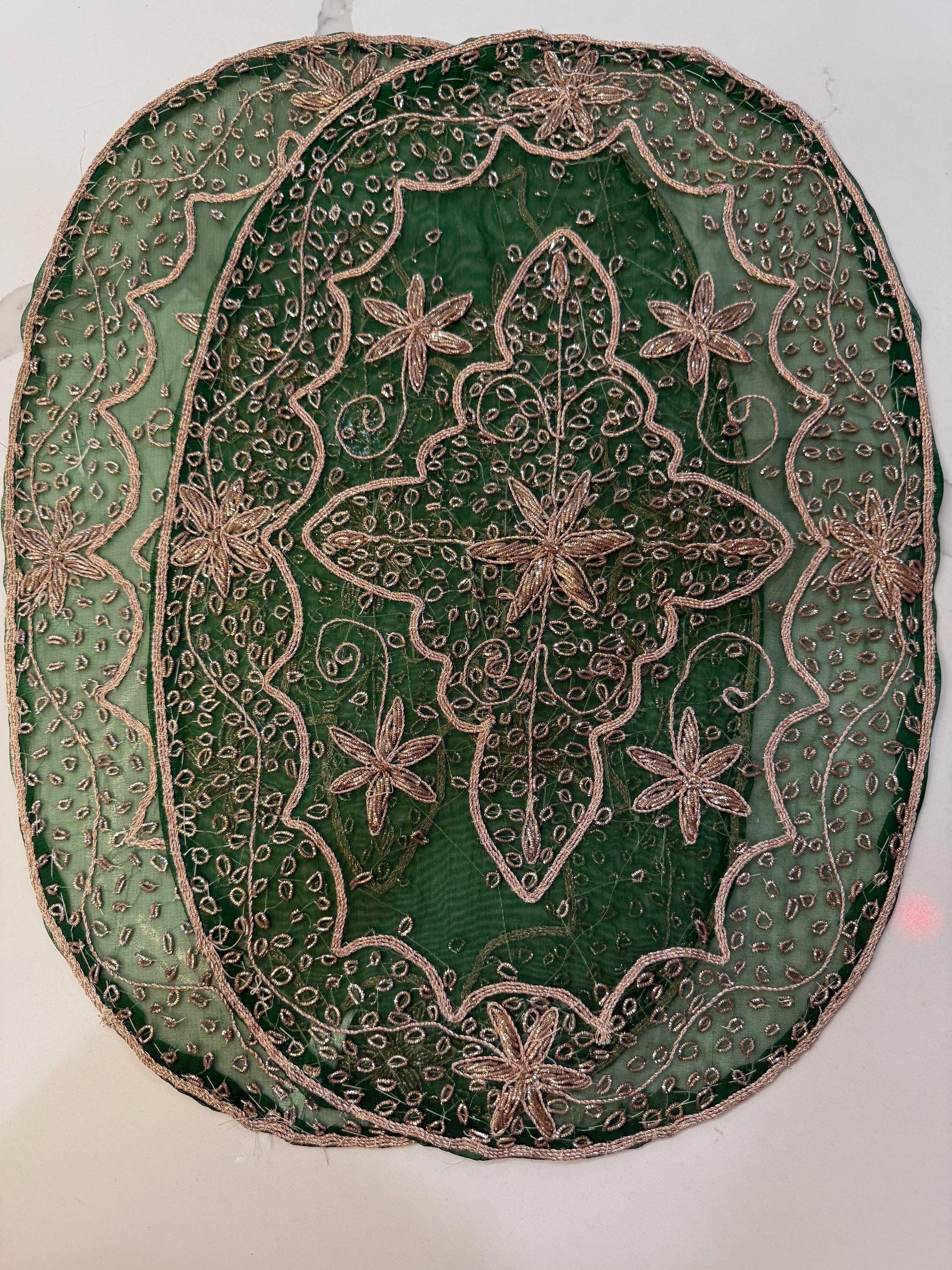 Set of 2 Beaded Floral Placemat Set: Sheer Sari Table Chargers, Indian Zardozi Mats