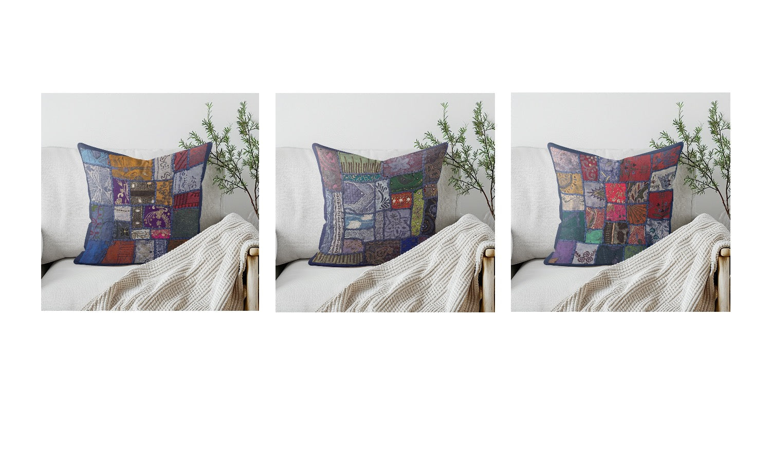 Bring home a piece of India’s rich textile heritage with these handmade embroidered pillow covers, available in three unique designs to suit your personal style.