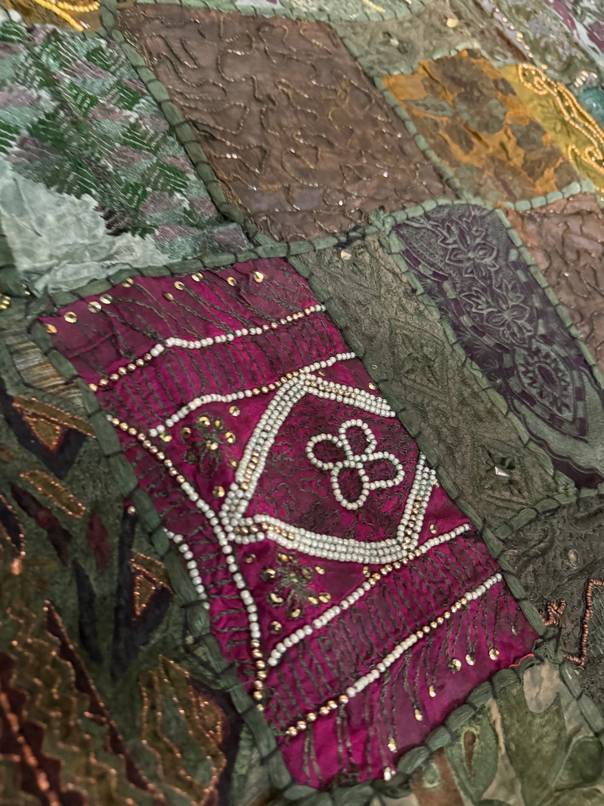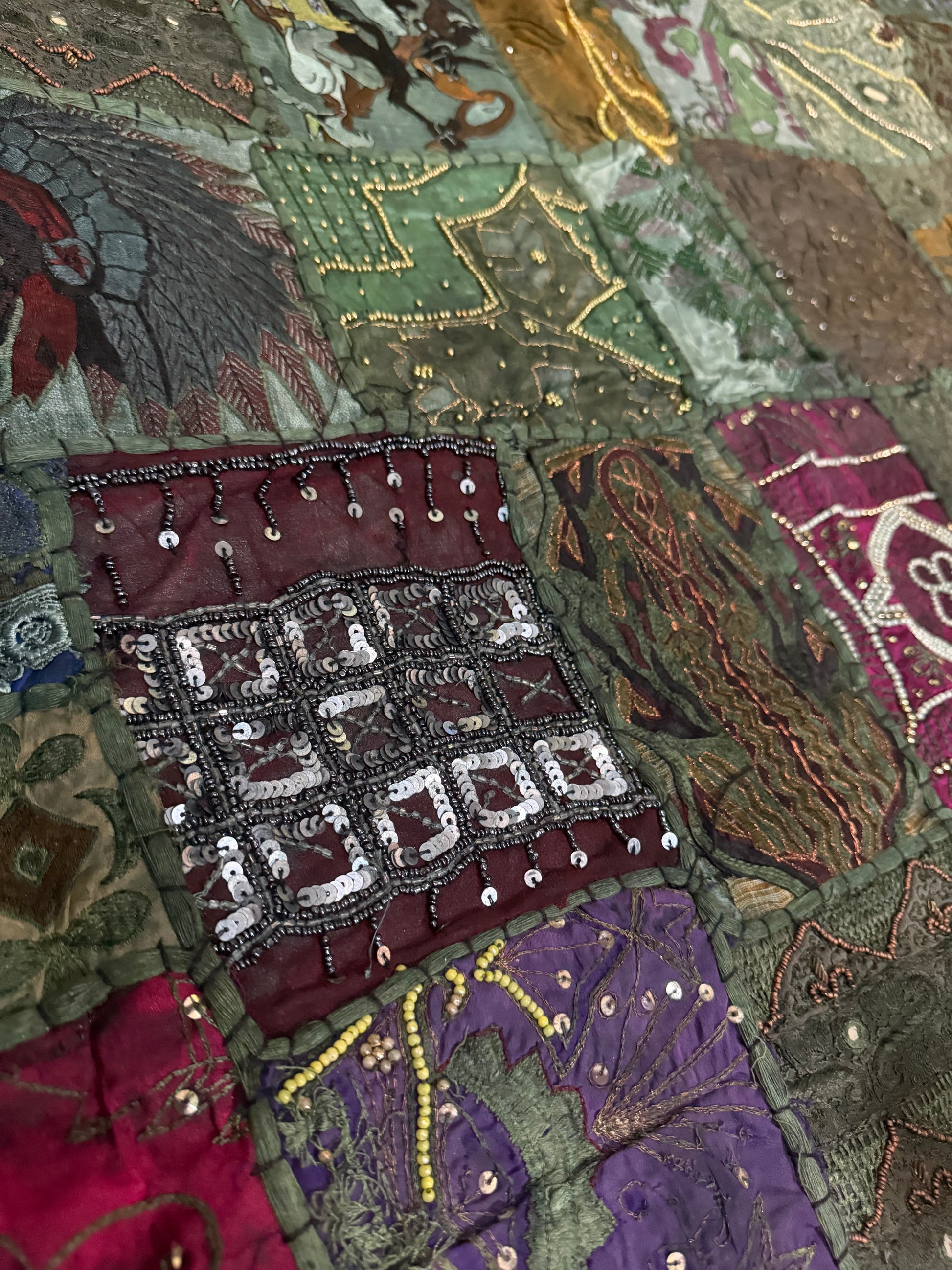 This embroidered sari patchwork tapestry can be used in countless creative ways: