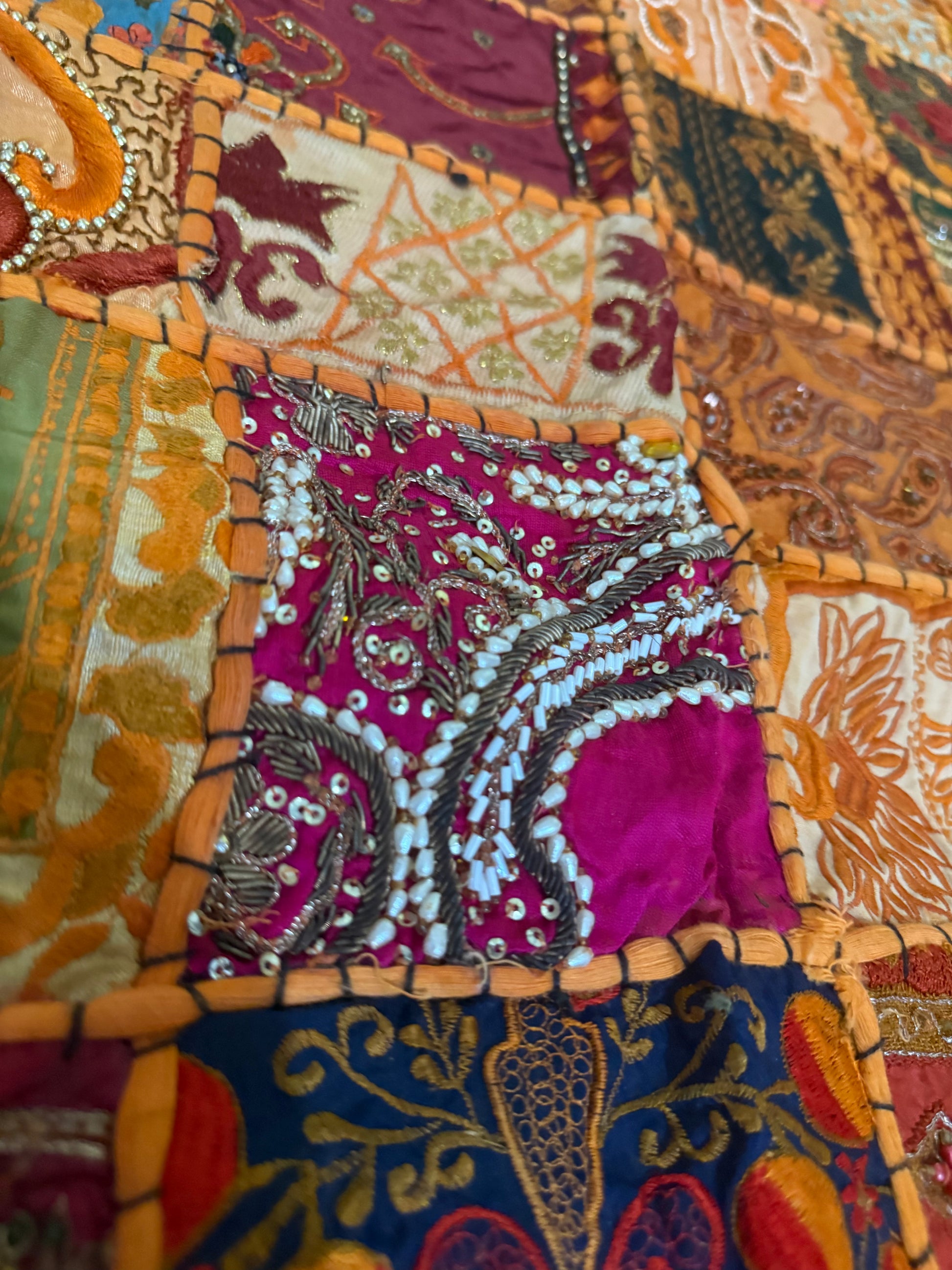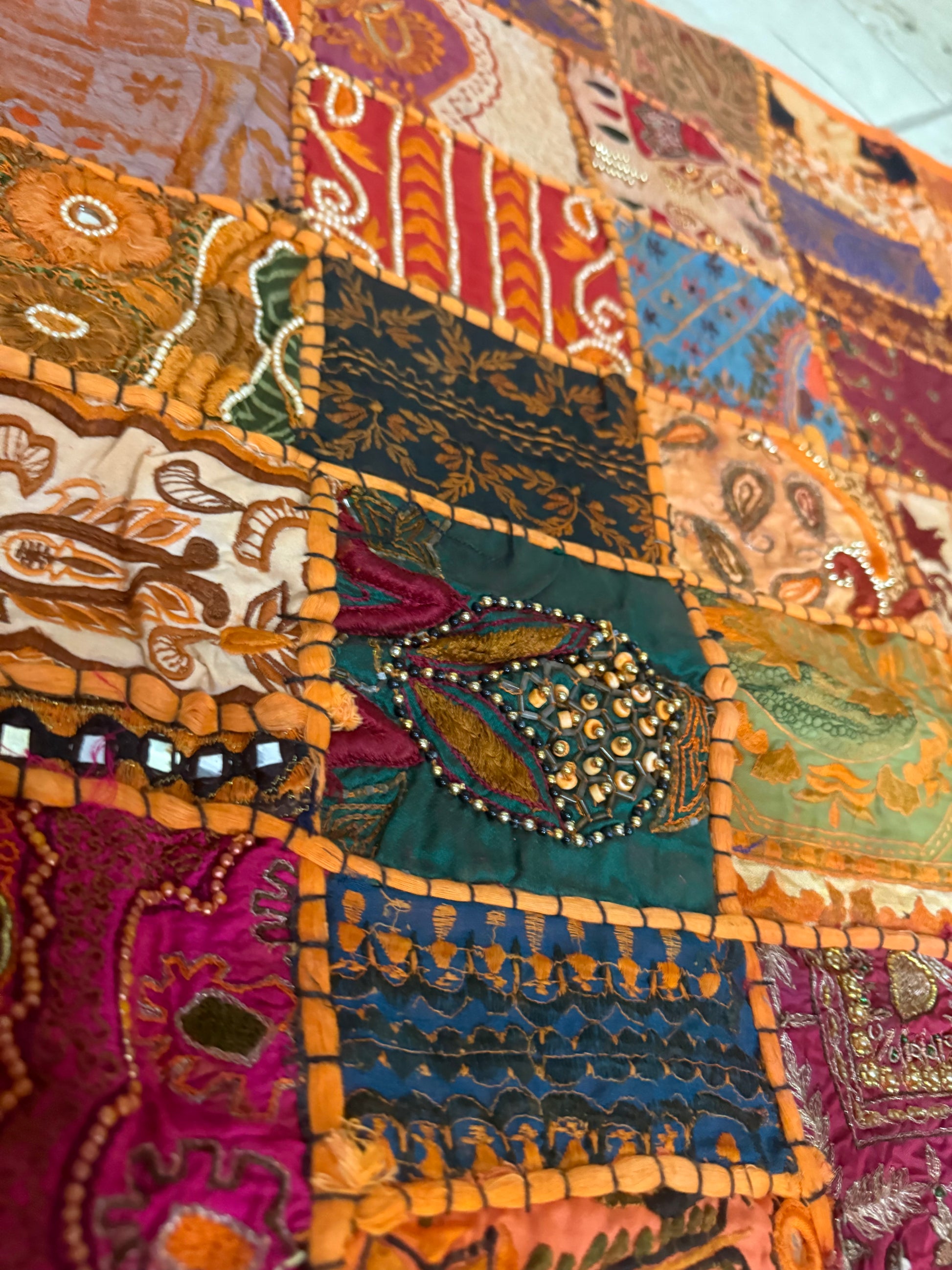 Whether youâre searching for a vibrant wall dĂ©cor piece, a boho throw, or a cultural conversation starter, this multicolor tapestry brings timeless Indian artistry straight into your living space. Each patch tells a story, repurposed from vintage saris, wedding gowns, and traditional textiles of Rajasthan, India, making it as sustainable as it is beautiful.