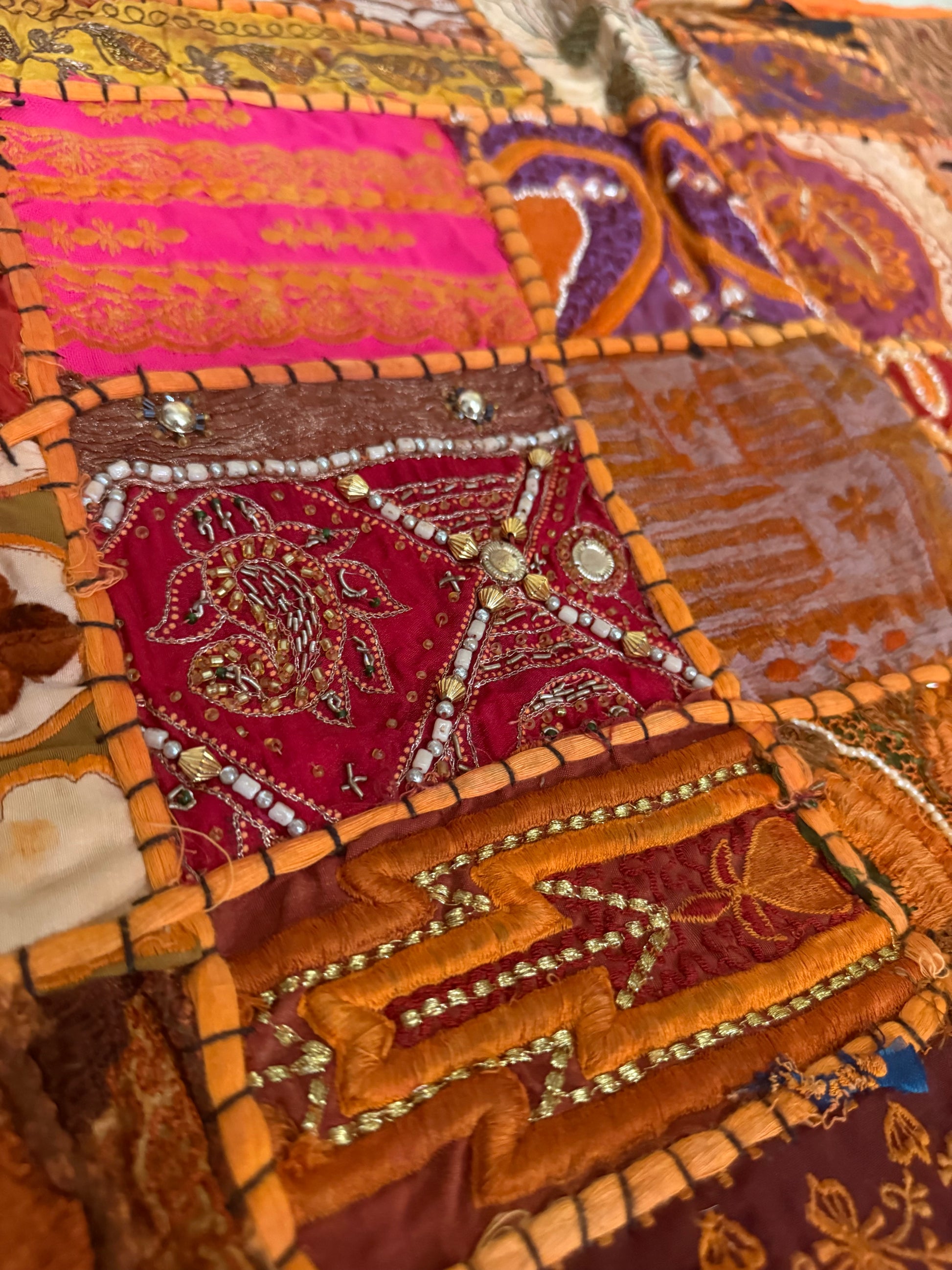 Patchwork Magic: Multiple fabric patches stitched together create a mosaic-like masterpiece.