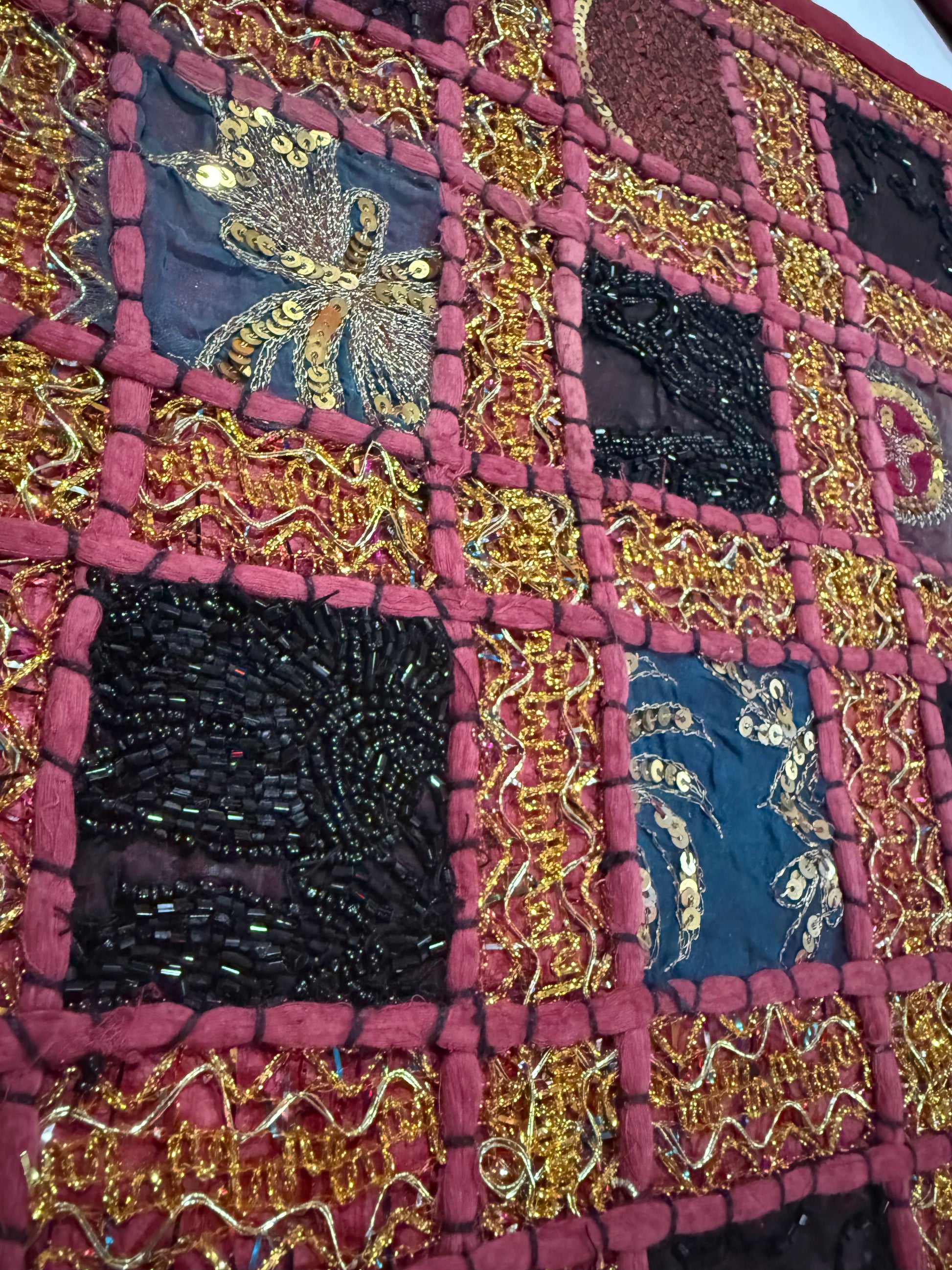Handmade Indian Patchwork Cushion Cover – 16x16 Inch Red Boho Tapestry Pillow Burgundy Beaded Tapestry Pillow Cover: Vintage Indian Embroidered Cushion #12