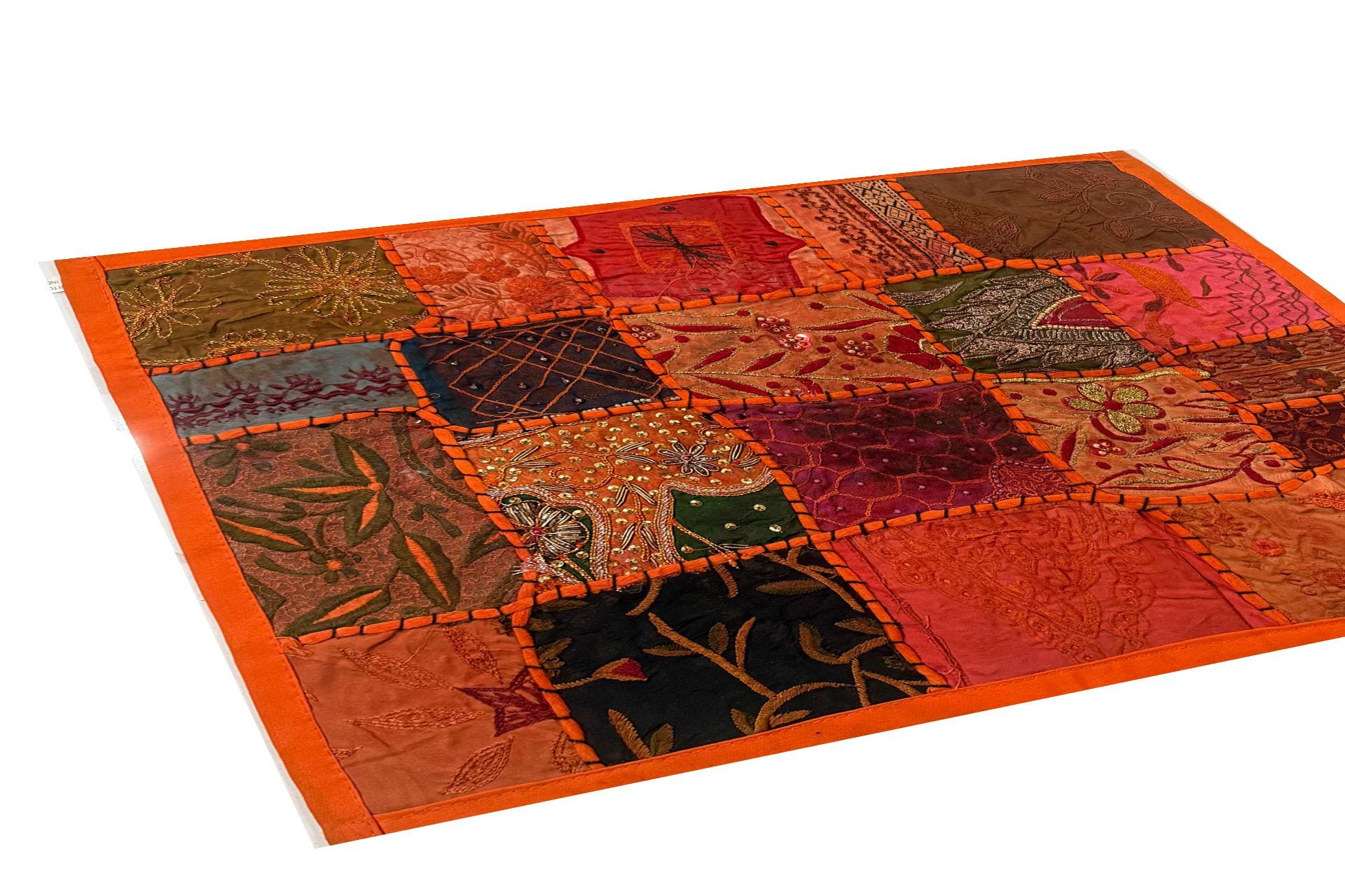 20" Orange Beaded Tapestry Placemat: Zardozi Indian Table Mat